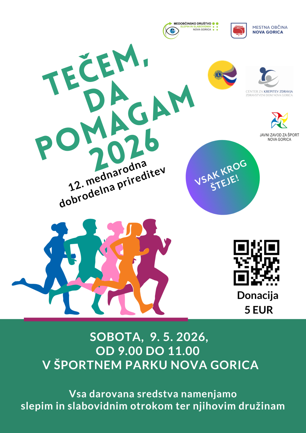 Srečamo se v soboto, 9. maja 2026, med 9. in 11. uro v Športnem parku v Novi Gorici.