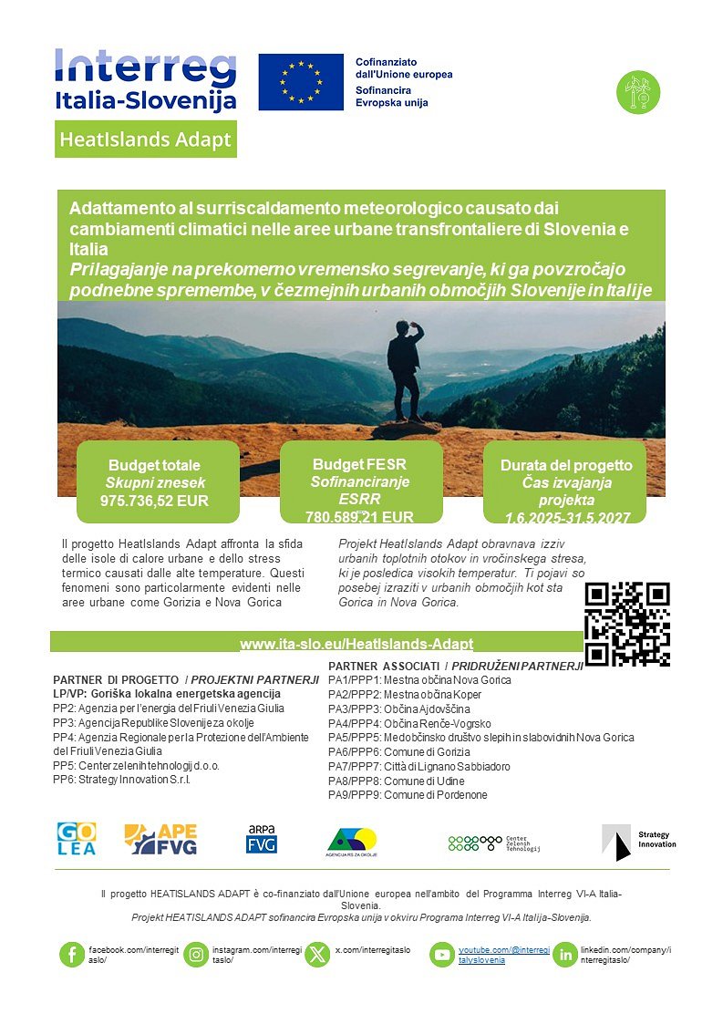 Poster projekta HeatIslands z nekaterimi ključnimi podatki.